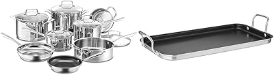 Cuisinart 89-13 13-Piece Cookware Set Professional-Series, Stainless Steel & Griddle Skillet, Nonstick Double Burner, 10x18-Inch, MCP45-25NSP1